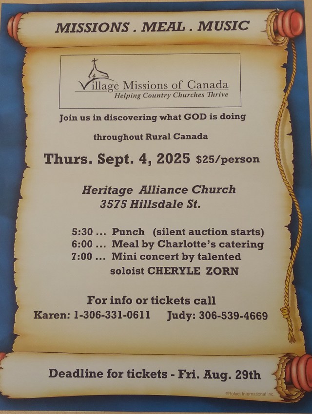 Location: Westhill Park Baptist Church – 8025 Sherwood Drive, Regina